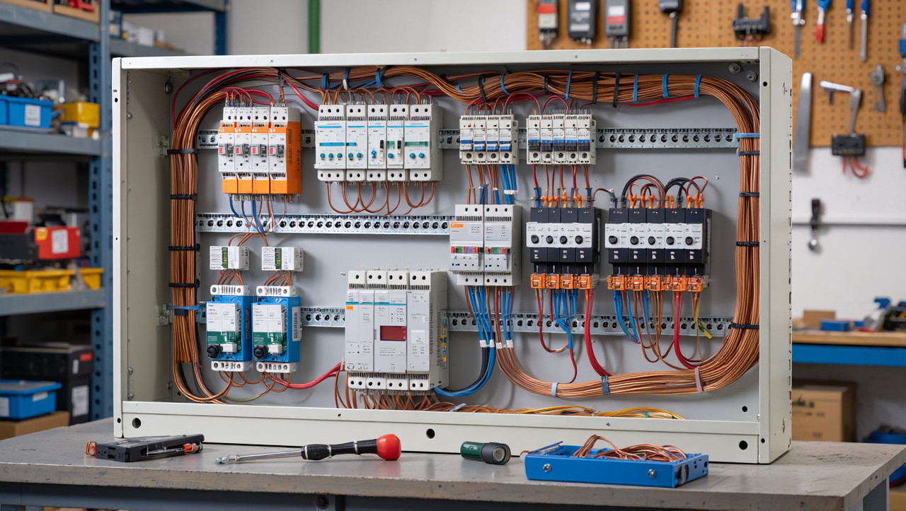 - Безопасность эксплуатации — правильно собранный щит защищает оборудование и людей от коротких замыканий и перегрузок.